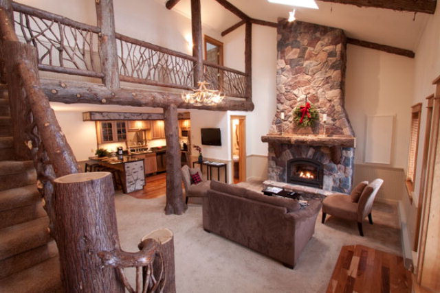 Last Pine Lodge Unit finished. High end appliances, sky lights, granite countertops, floor to ceiling gas fireplace, custom logwork and custom Adirondack Murphy bed in 2nd bedroom. Den is set up as 3rd bedroom w/twin beds and flatscreen TV. Impressive vacation rental history.