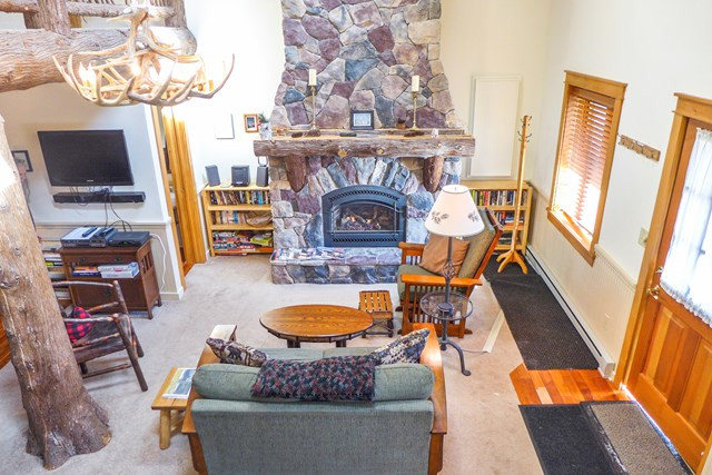 Beautiful Adirondack style 2 + bedroom, 1.5 bath condominium in a quiet residential community walking distance to everything that Lake Placid Main Street has to offer! Sold turn key, the unit has Adirondack handcrafted cedar log, twig and birch accents, a stone gas fired fireplace with granite hearth, kitchen with stainless steel appliances and a beautiful bathroom with large jetted soaking tub and separate tiled shower. Den is set up as a 3rd bedroom with twin beds and flatscreen TV. Includes one reserved parking space. Community chiminea and gas grill. EXCELLENT rental history with many repeat guests!