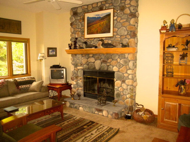 TURN-KEY LAKESIDE #29 2 bedroom condo. at the Whiteface Club & Resort. Steps away from Lake Placid lake, Moose Lodge waterfront dining, the beach and marina! Enjoy beautiful lake mountain views inside and out! Interior features 2 bedrooms, 2 full baths, open living/dining room, back patio and river rock floor-to-ceiling wood-burning fireplace. Desirable end unit privacy next to pond and falls completes your getaway experience. Original owners. Monthly fees include 5 complete memberships to the Whiteface Club & Resort – addt’l. amenities include golf, tennis and cross-country skiing. New stone and wooden deck/entranceway. Only one available!