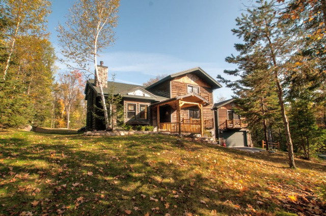 Private location w/trails for walking/XC skiing from your door. 4 or 5 bedrooms – each w/private full bath. Great Room has tall cathedral ceiling w/formal dining area, fireplace & powder room. Built-in breakfast area adjoins spacious kitchen w/all new appliances & rear screened porch/deck for outdoor dining. Main level features comfortable den w/fireplace, library and office. Also separate guest suite w/rustic Adk flair & 2 private balconies. Upper level master bedroom/bath has large walk-in closet, custom tiled shower and jetted tub. 2 more bedrooms – each with private bath & balconies on upper level. Lower level exercise room, full bath, storage and office or 5th bedroom.